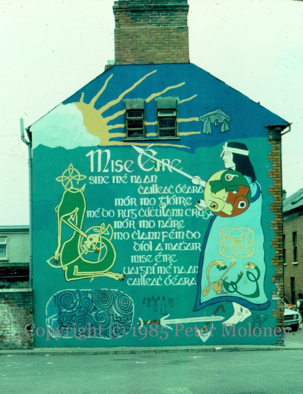 With portraits of Bobby Sands, Wolfe Tone, and in the centre, Winifred Carney.