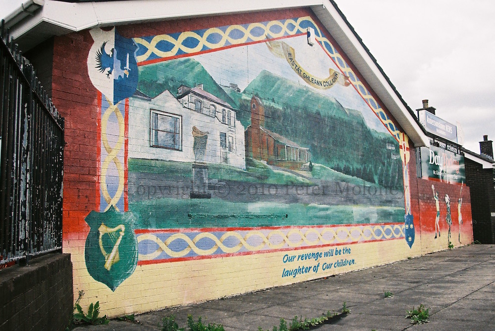 The items above the mural are new, compared to 2010. The plaque on the left is to people who died “in defence of the area” and on the right to those who died “of natural causes” who endured discrimination, hardship, suffering, imprisonment.