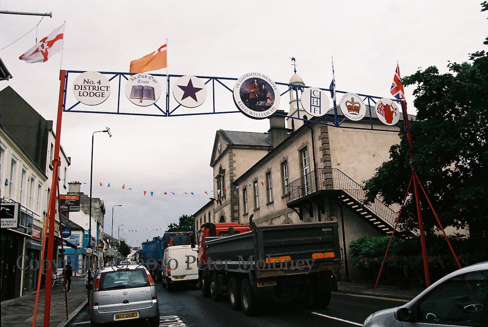This is the Orange arch outside the town hall in Newtownards (Frances Street/Regent Street). “No 4 District Lodge“
