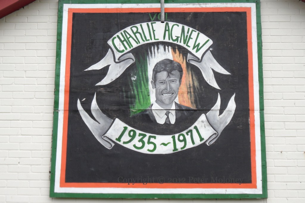 “1935-1971” – Agnew’s name is recorded in republican rolls of honour (death on December 17th, 1971) and in other murals (Tullygally), but he does not appear in Sutton or McKittrick. If you have information, please comment or get in touch.