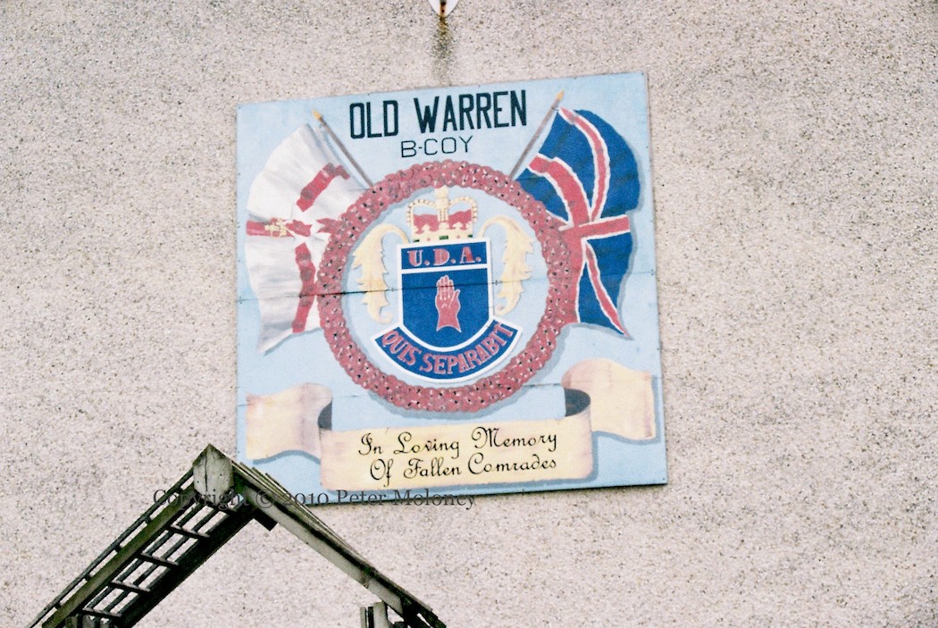 “In proud memory of Ray Smallwoods (murdered by the enemies of Ulster 11th July 1994). … Erected by officers and volunteers of Old Warren A Coy.” Smallwoods was killed by the IRA in the garden of his home in Donard Drive, Lisburn (WP).