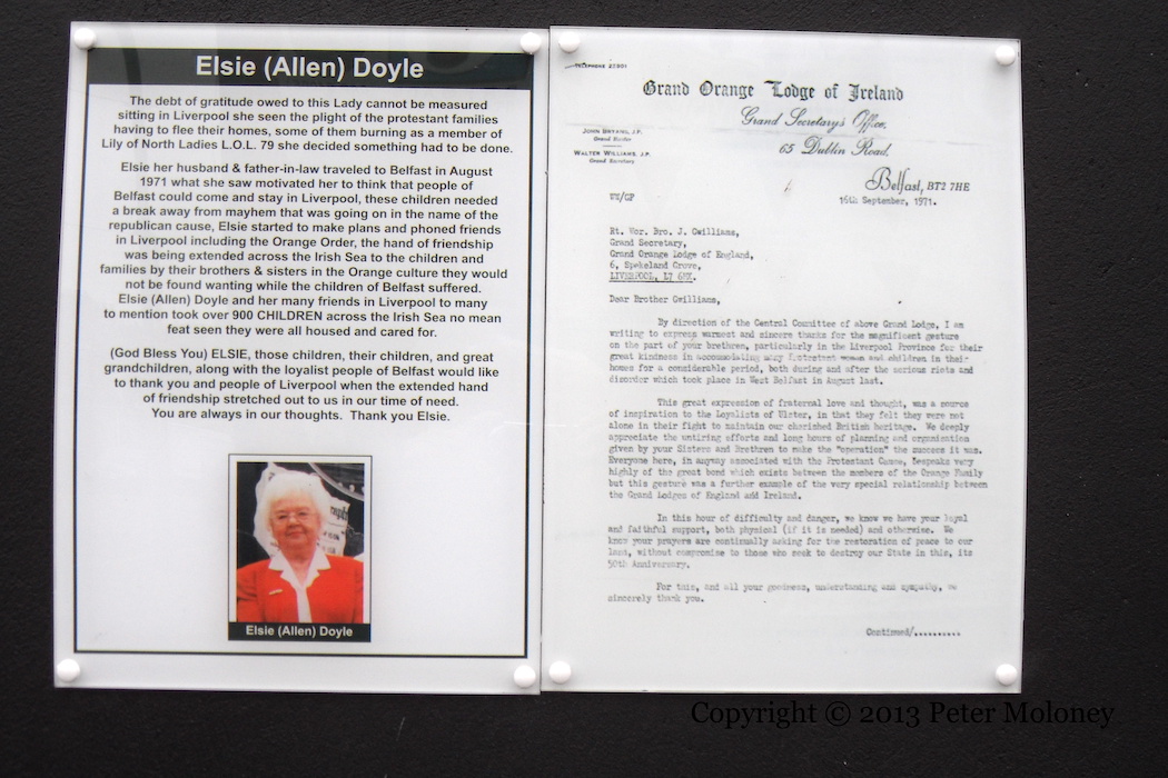 The one with some damage reads, “Our only crime was to serve you, the community and protect ‘our country’. Now times have changed. As a force, our belief is not only ‘for God and Ulster’ but to you, the community, ‘help us to help you’.”