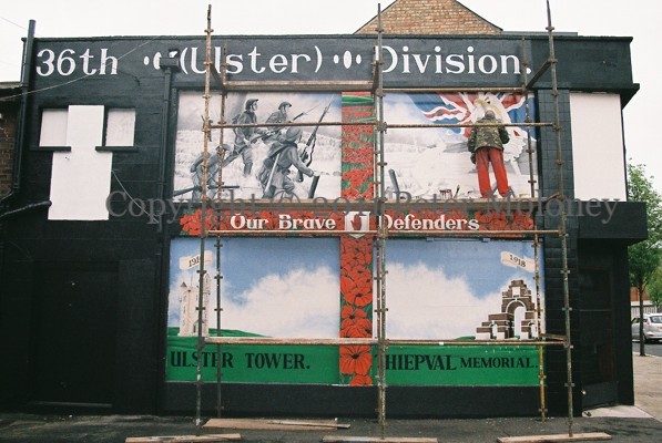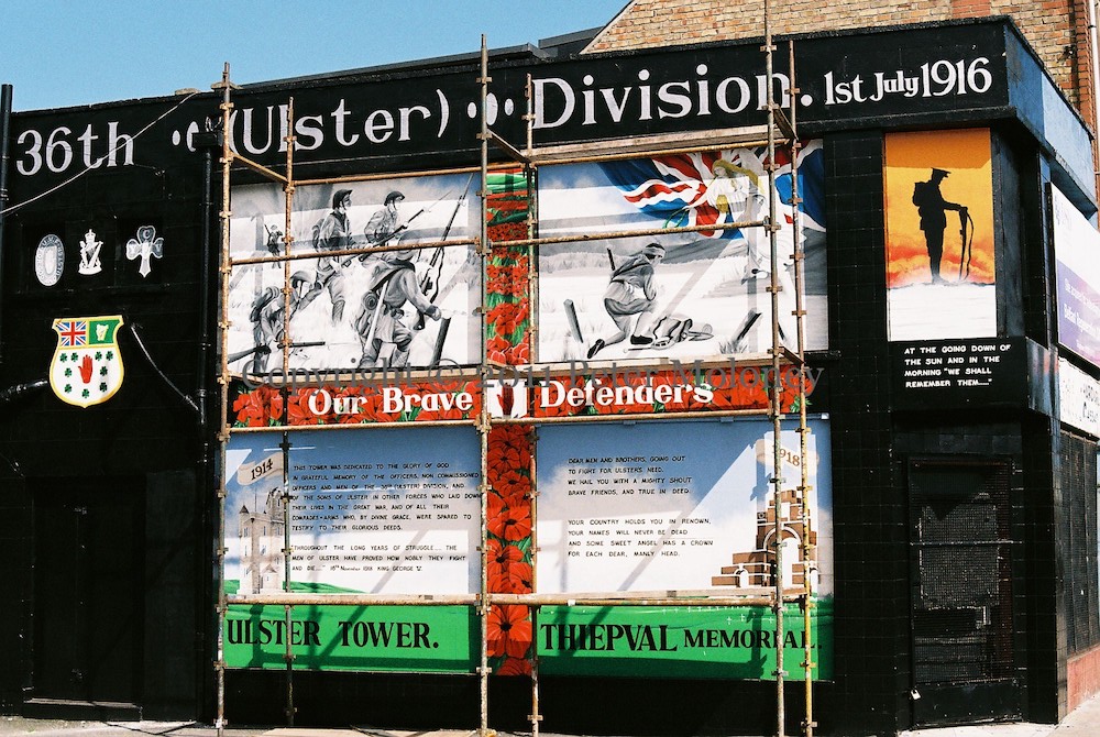The main panel reads: “Liscolman Protestant Boys remember 1914-1918. 36th (Ulster) Division. Robert Quigg, VC. Sons of Ulster, Somme 1916. When you go home, tell them of us and say,/for their tomorrow, we gave our today.”