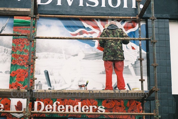 Toberdoney Road, Liscolman. With red-white-and-blue kerb-stones in Carnbore Road, and coping- and kerb-stones in Toberdoney Road.