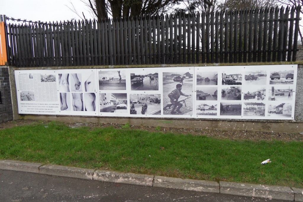 This installation of information and photographs relating to Operation Motorman and the killing of Seamus Bradley is next to the memorial to Bradley on the path running through Bishop’s Field (which contains complete information about his death).
