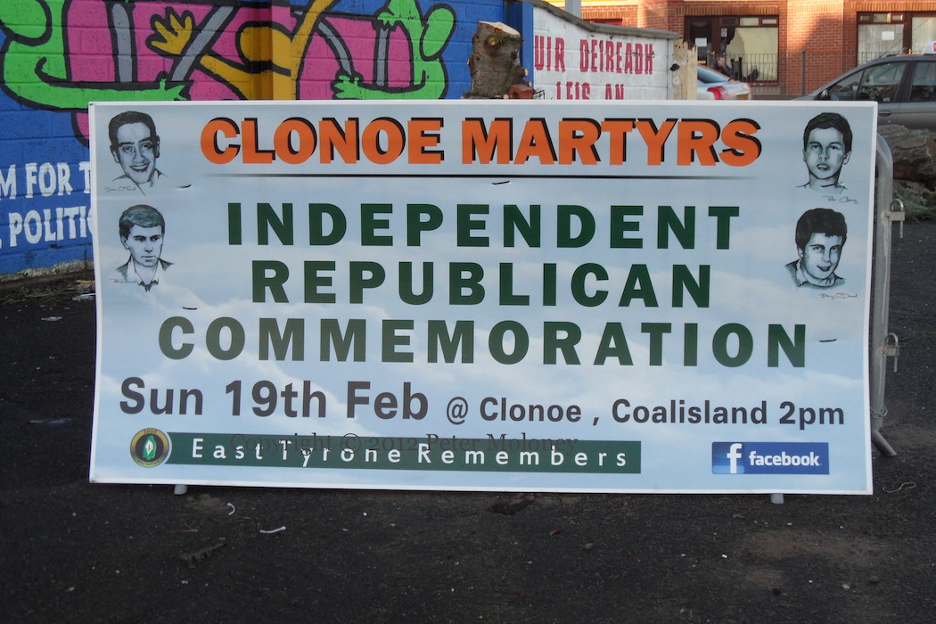 “East Tyrone remembers the “Clonoe Martyrs” – four IRA volunteers who were killed by the SAS after attacking Coalisland RUC station with a machine gun mounted on the back of a lorry on February 16th, 1992 as they were switching from the attack vehicles to getaway cars in Clonoe (WP).