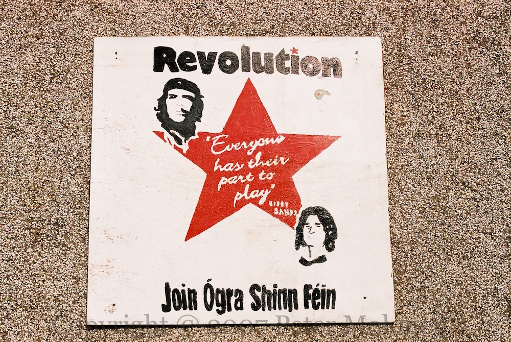 “Everyone has their part to play” – Bobby Sands, pictured along with Che Guevara. “Join Ógra Shınn Féın”.