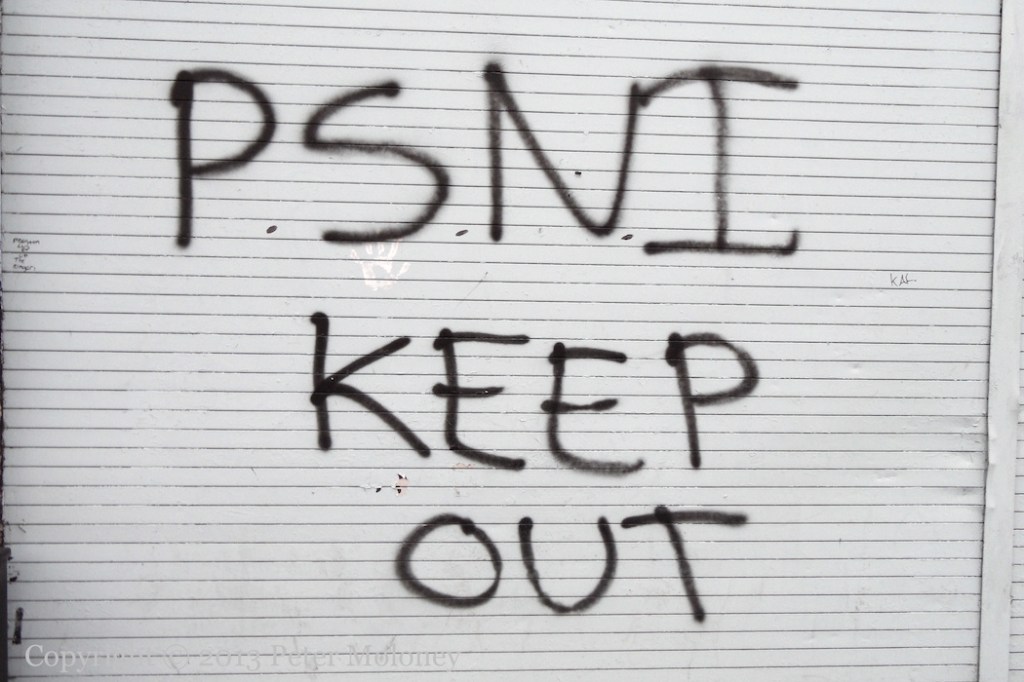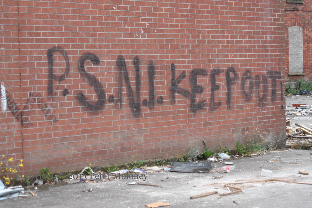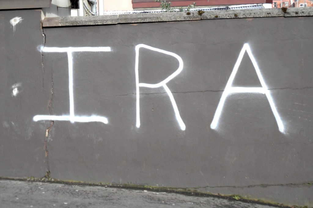 These republican graffiti (and one 1916 Societies board) come from Creggan, Derry. From top to bottom: “UK no way”, “Join police, face death”, “PSNI/RUC not welcome”, “Join [New] IRA”.