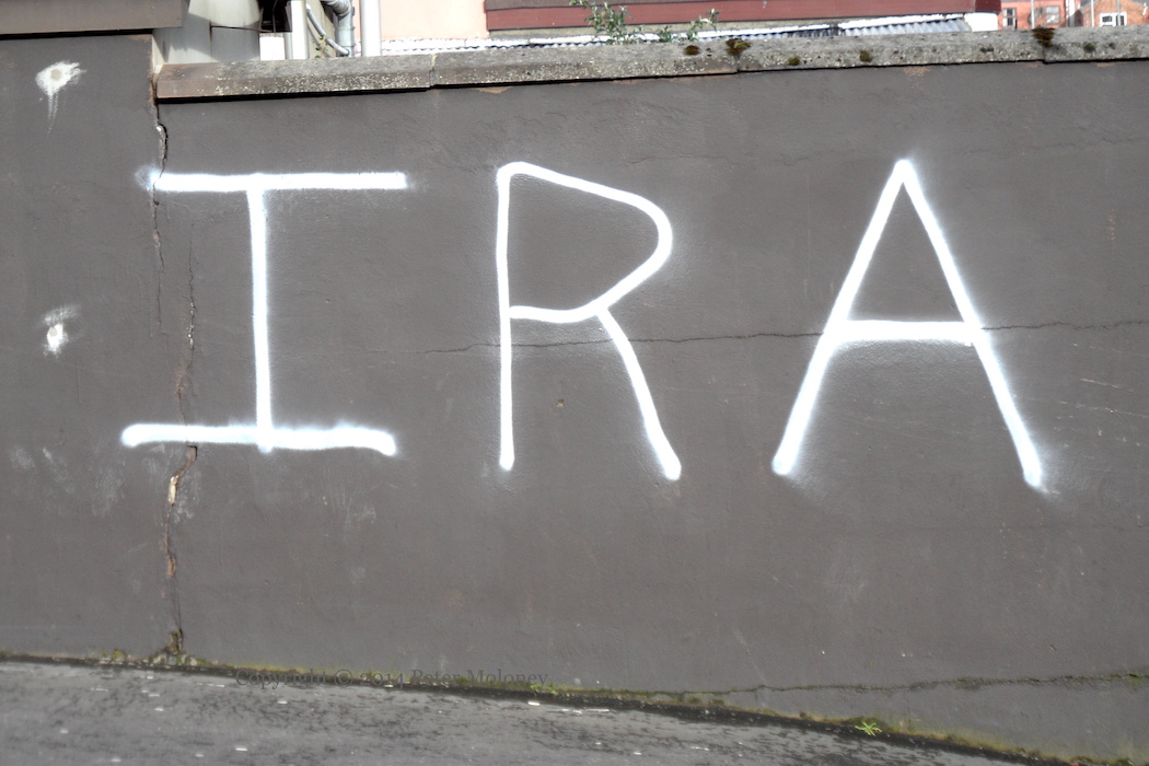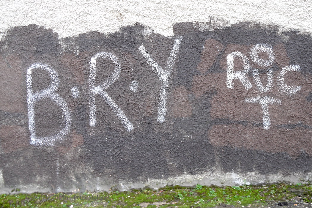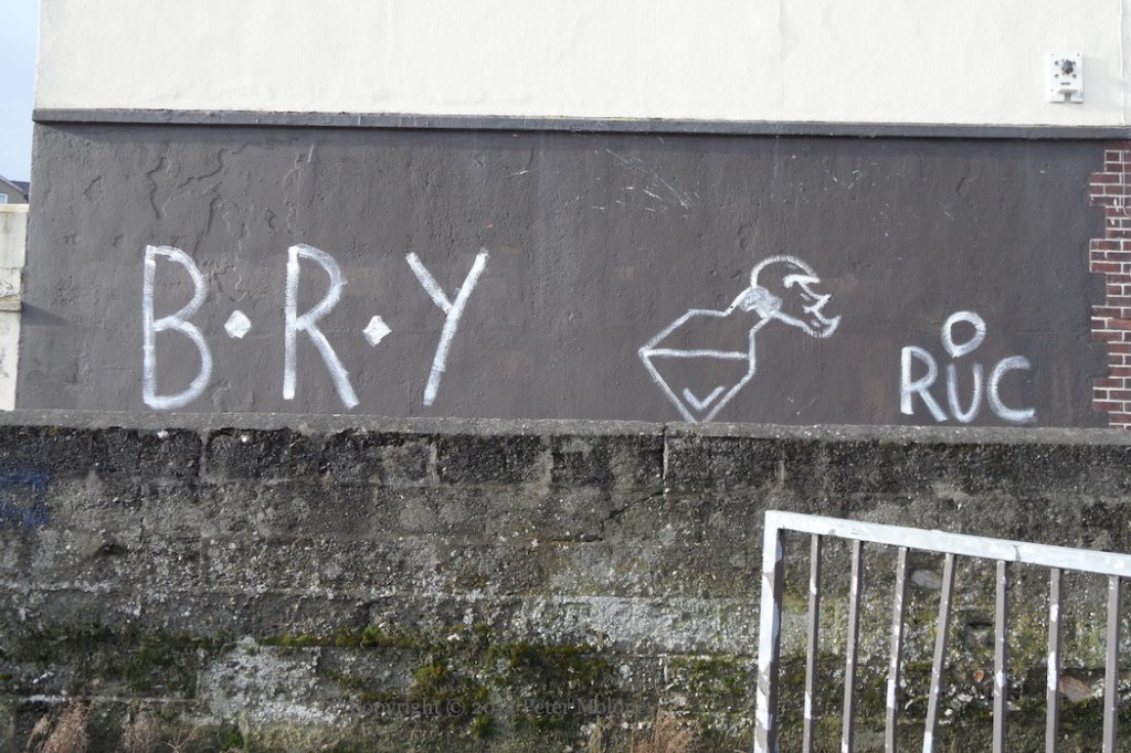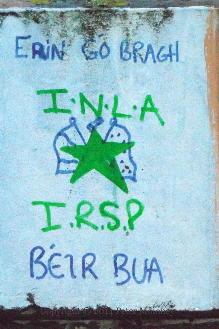 Here is a selection of graffiti (and crude drawings, of the INLA emblem and a petrol bomb) from the Bogside, Derry: “Brits out now – IRA”, “BRY/RSYM”, “Erin go bragh – INLA/IRSP – beır bua”, “PSNI scum”