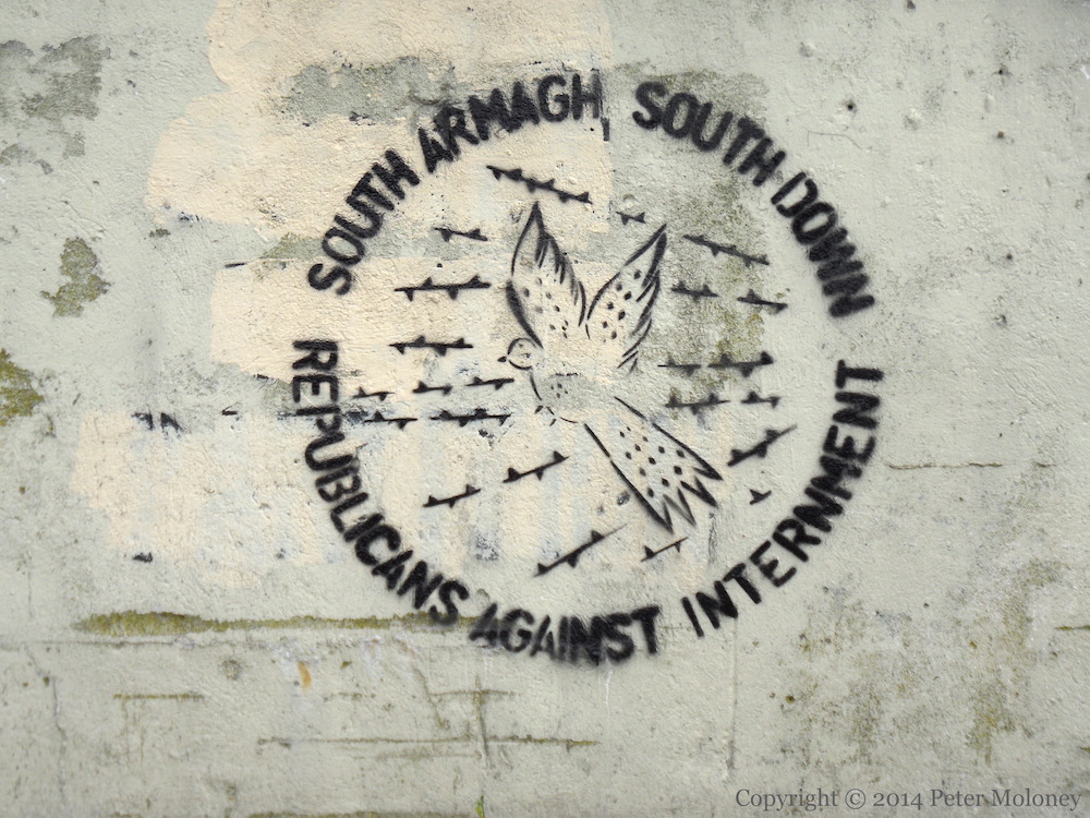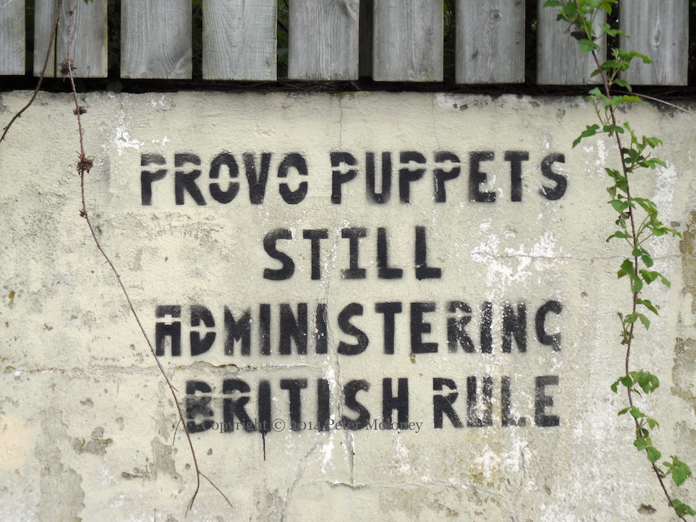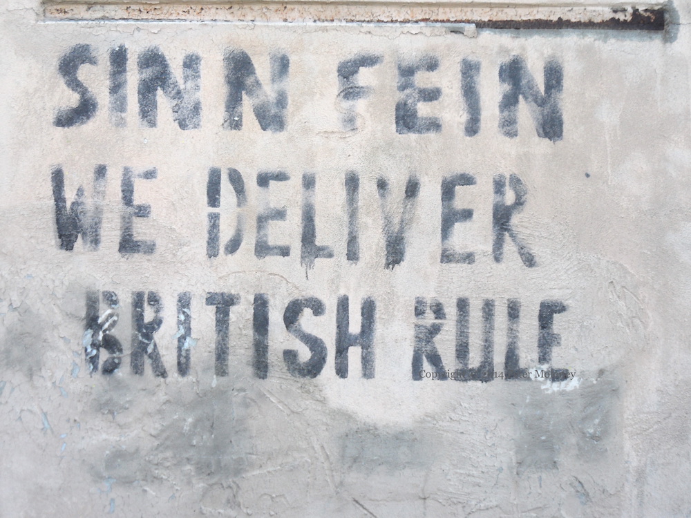 Here is a gallery of anti-Agreement stencils and hand-painted boards in Newry. The primary concern is the treatment of prisoners in Maghaberry and elsewhere – “Republicans against internment”, “Stop the strip searches in Maghaberry”, “Smash Maghaberry”, “End British torture in Maghaberry”, “Restore political status” – followed by anger at Sınn Féın for its collusion with the organs of Westminster – “Sinn Féin – we deliver British rule” and “Provo puppets still administering British rule”.