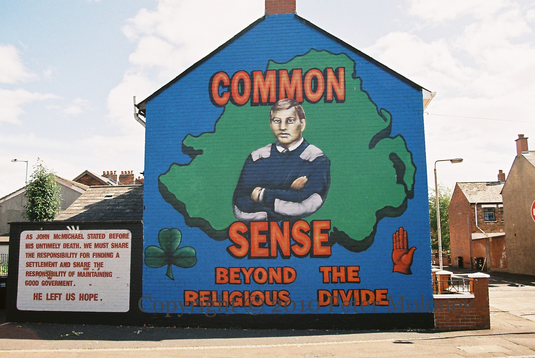 UDA commander John McMichael was also secretary of the New Ulster Political Research Group (NUPRG), a think tank of the UDA/UFF. The group argued for an independent Northern Ireland (based in part on beliefs about a separate Ulster ethnic identity) in two documents, 1979’s Beyond the Religious Divide and 1987’s Common Sense (available at CAIN), promoting the philosophy of ‘Ulster nationalism’, depicted here by the free-floating Northern Ireland. McMichael ran unsuccessfully for the Belfast South seat after the murder of Robert Bradford (see To Bathe The Sharp Sword Of My Word In Heaven).
