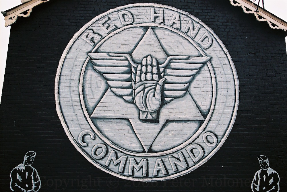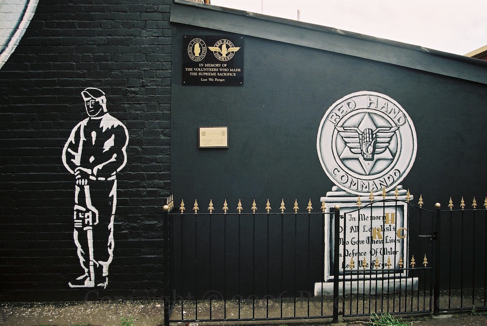 The four others, listed both on the plaque in front of the mural and on the stone in the memorial garden (constructed in 2003) are UVF volunteers Robert Seymour, shot dead by the PIRA; James Cordner and Joseph Long, who were killed in a premature explosion, and Robert Bennett, killed by the British Army during a riot. (Seymour and Long are on the right of the mural.)