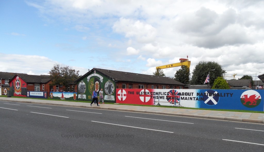 The murals along east Belfast’s “Freedom Corner” (on the Newtownards Road) were repainted over the course of several months in 2015. These images are from a variety of dates in July and August; the ‘red hand’ piece is incomplete – for the finished work, see The Strangest Victory In All History.