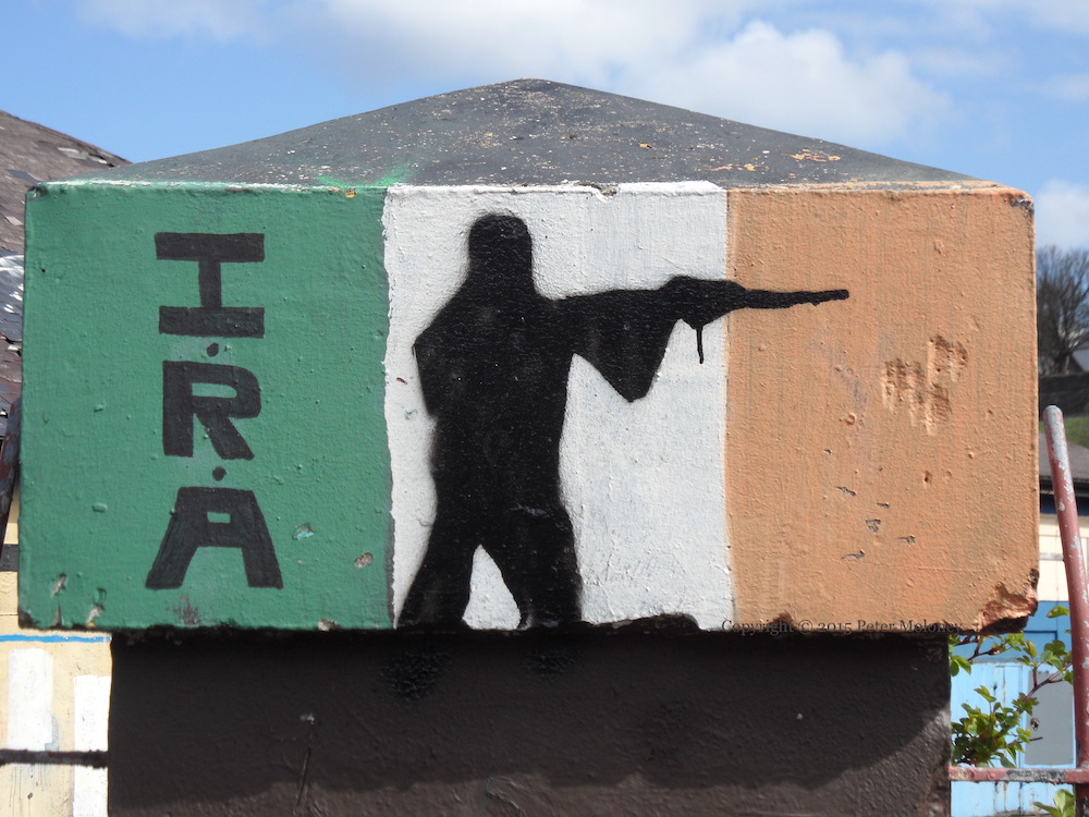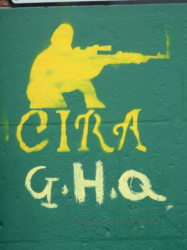 The stencil might be crude but the intent is clear: to suggest that the anti-Agreement IRA (probably the Continuity IRA, specifically) intend to continue the physical fight against British occupation.