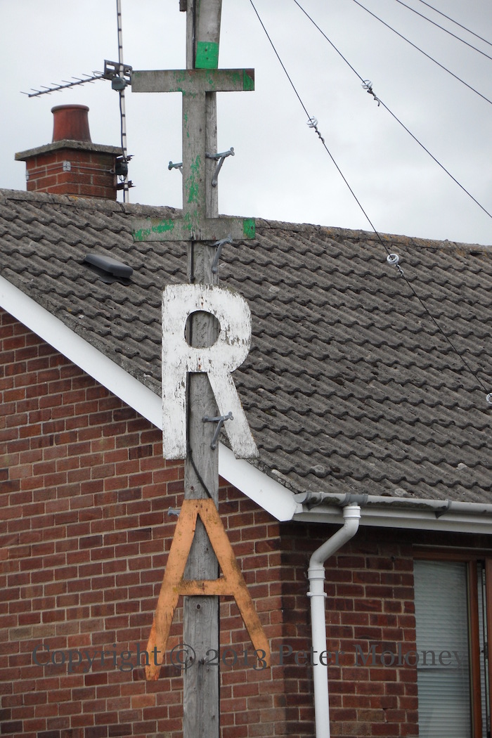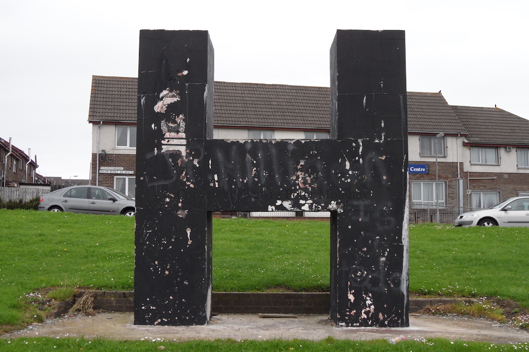 Perpendicular to the road are small boards calling for the release of Martin Corey and political status, and a large board commemorating the hunger strikers: “H-Block martyrs – remember them always – the struggle for political status – Republican Sınn Féın”