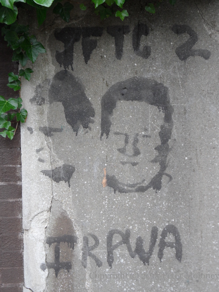 This is a new panel – perhaps the fourth in 2015 – in the RNU (Fb)/Cogús (Fb) mural on Northumberland Street. If you can identify the image or the style, please get in touch.