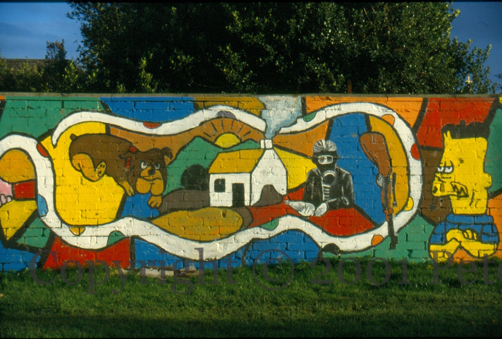 2001 image of the masked volunteers previously seen in 1997 in Lower Stanfield Street. It is extremely unusual for a (republican) “hooded gunman” mural to survive to this date. We conjectured in the earlier post that the creation of the mural dates to the period between the ceasefires.