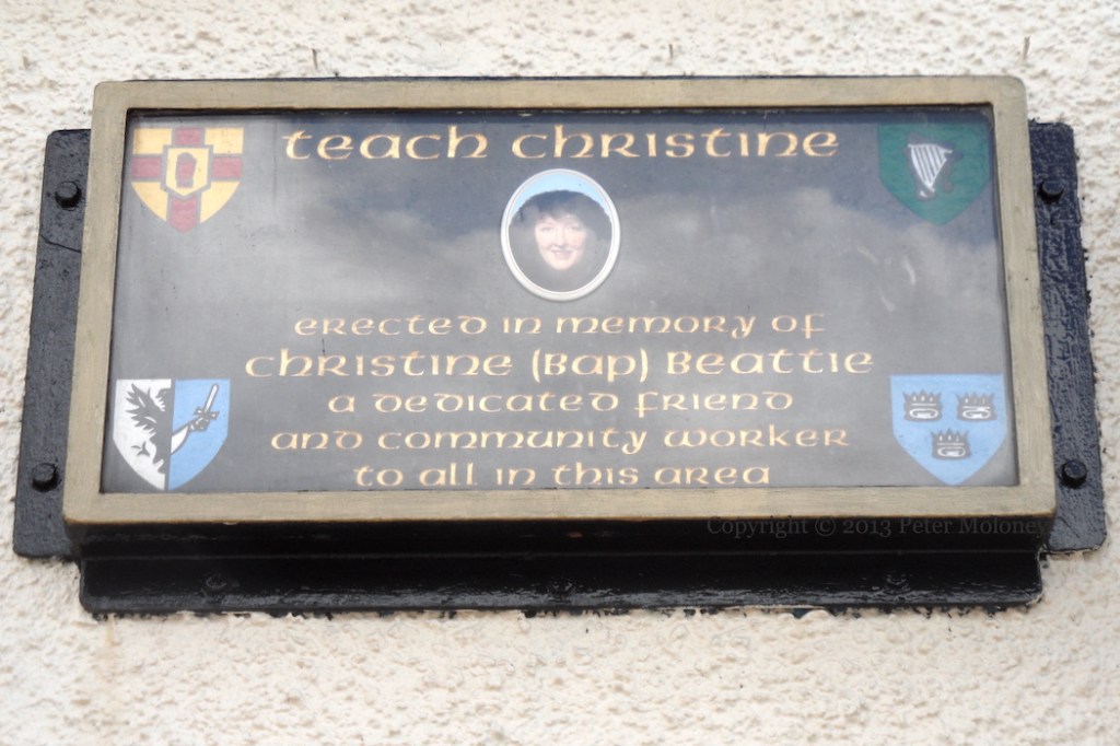 “Teach Christine. Erected in memory of Christine (Bap) Beattie, a dedicated friend and community worker to all in this area.”