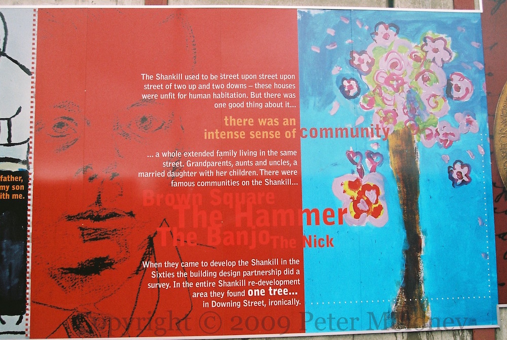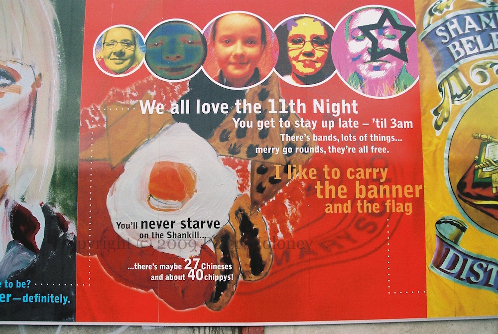 “Over a third of all children, are growing up in poor households. About 185,000 of households are in poverty, representatin about 502,000 people. Over 148,000 of these are children.” This is in contradiction with the aims of both the Proclamation of Éırí Amach Na Cásca, 1916 – “… cherishing all of the children of the nation equally and oblivious of the differences carefully fostered by an alien government, which have divided a minority from the majority in the past” – and the Democratic Programme of An Chéad Dáıl, 1919 “… to secure that no child shall suffer hunger or cold from lack of food, clothing or shelter, but that all shall be provided with the means and facilities requisite for their proper education and training as citizens of a free and Gaelic Ireland.” The other images are of Béal Feırste 1969, Léana An Dúın 1972, and Na Staılceanna Ocraıs, 1981.