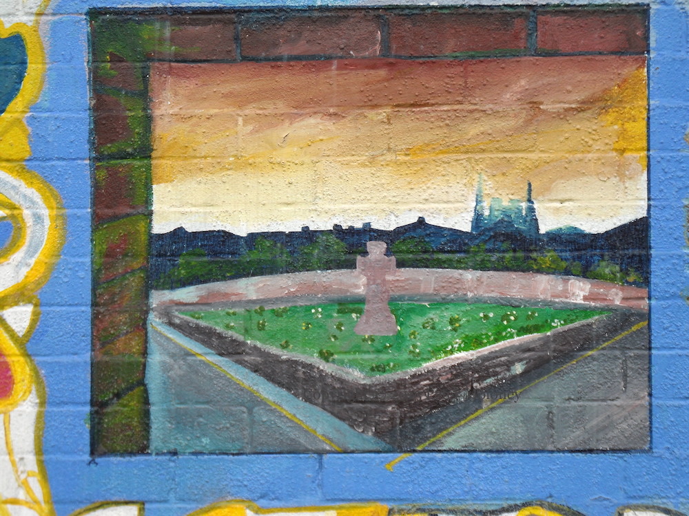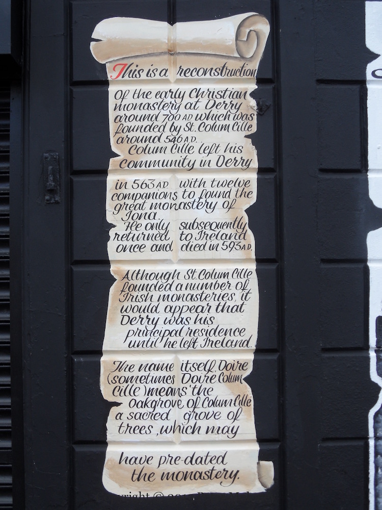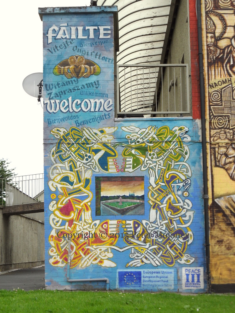 Painted by a crew of Belfast artists – Danny D and Mark Ervine, along with Lucas Quigley, Marty Lyons, Micky Doherty – organised by the Callan Street Residents’ Association, with funding from the European Union’s Peace III initiative.