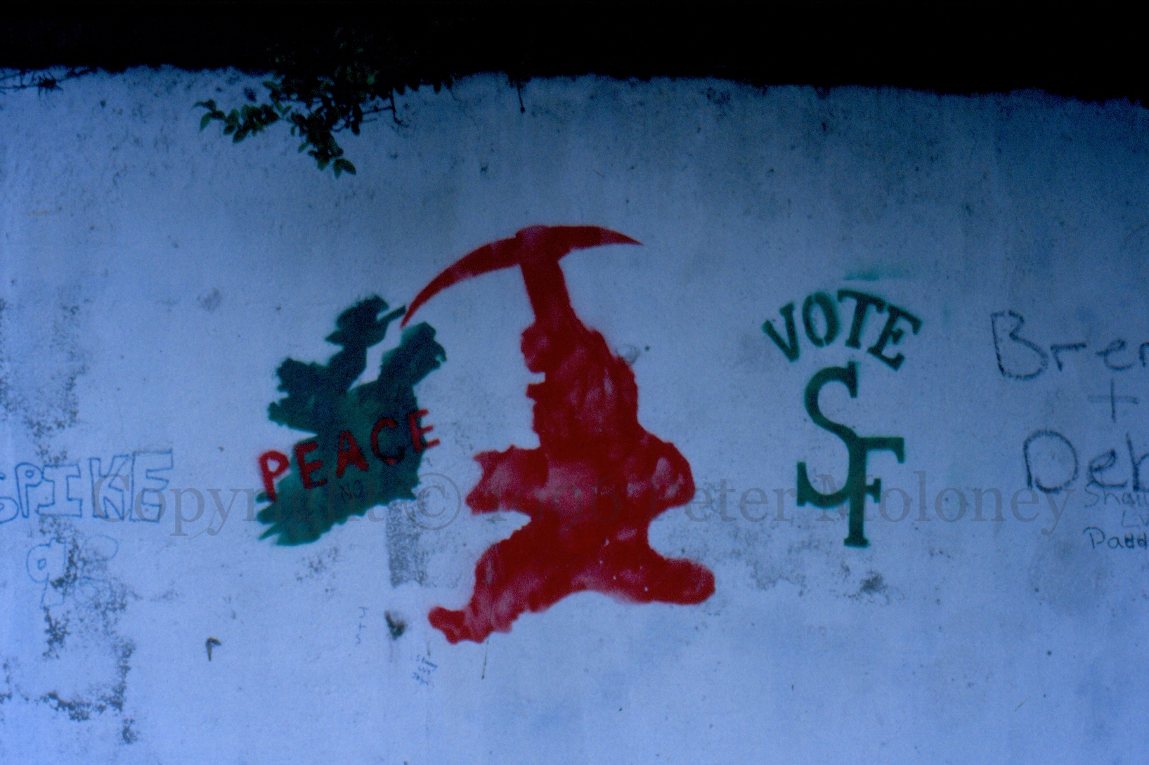 “Vótail Sinn Féin 1 2 3 4”. Free Derry Corner, Lecky Road, Derry