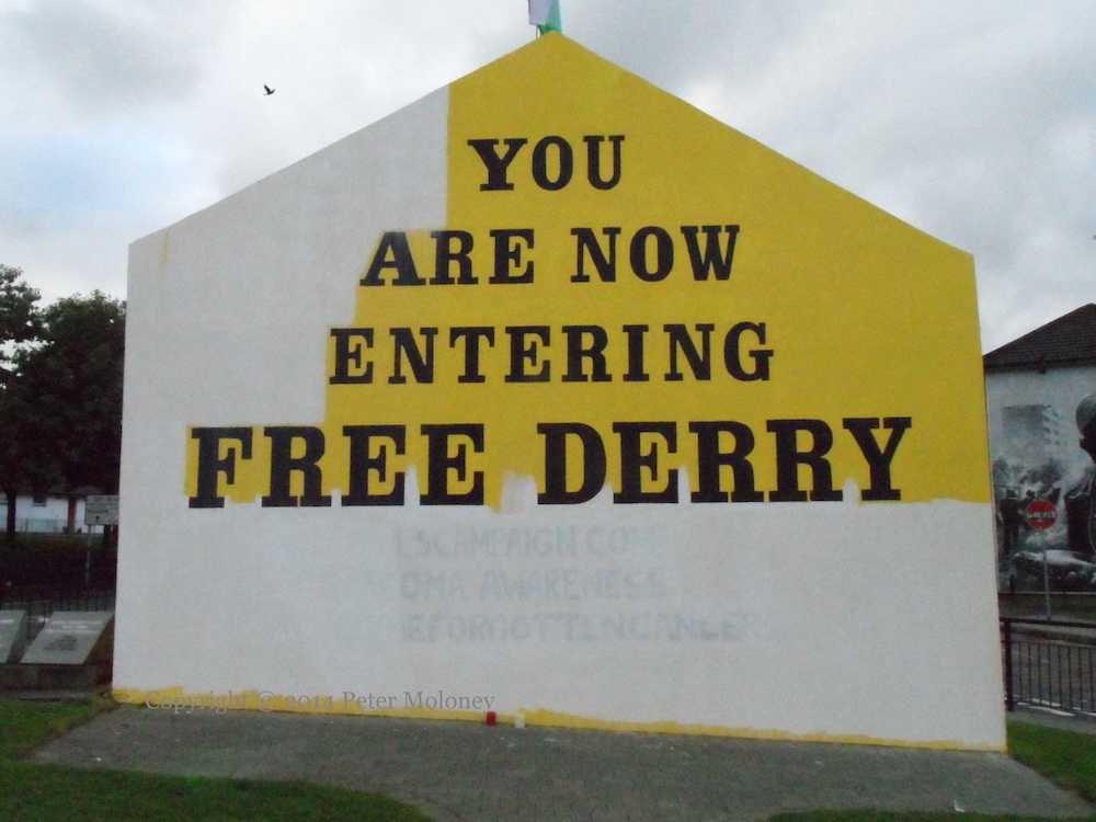 The artist is DD Walker (“Rebel Rebel”), who painted the Blood Of An Irish Rebel Che Guevara mural last (2013) October which this replaces.