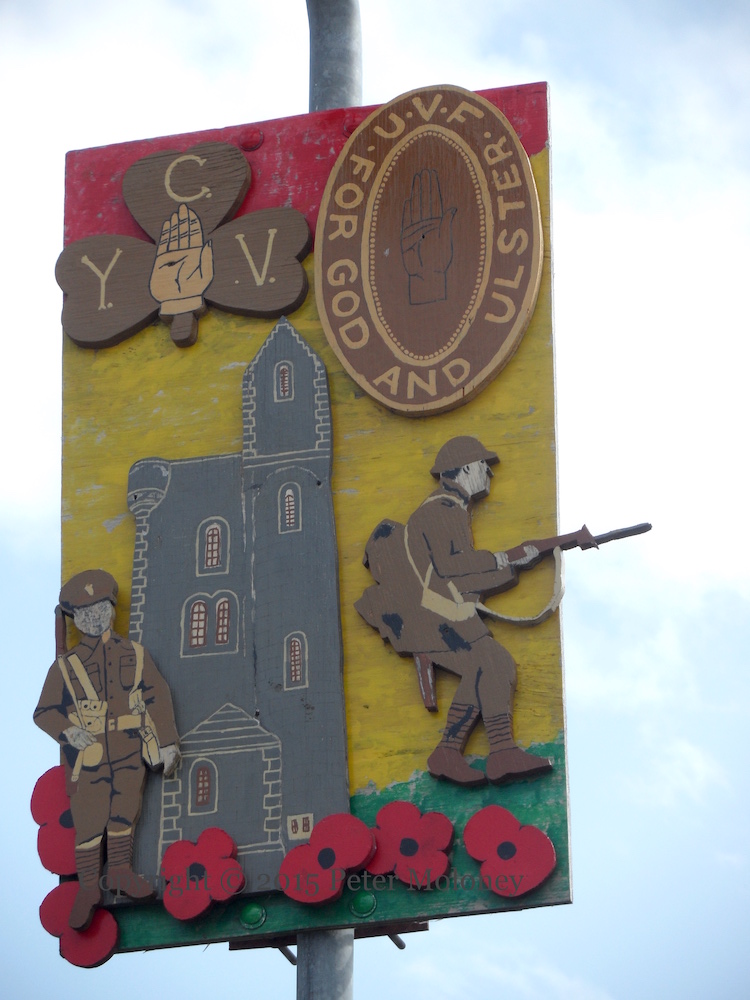 They both present the Ulster Volunteers/YCV of 1912 and WWI – in the first, two soldiers are placed alongside the Ulster Tower at Thiepval, France.