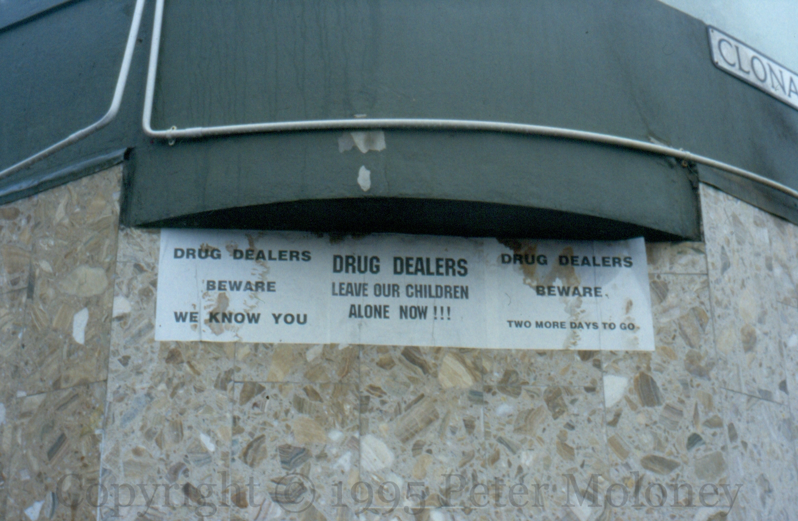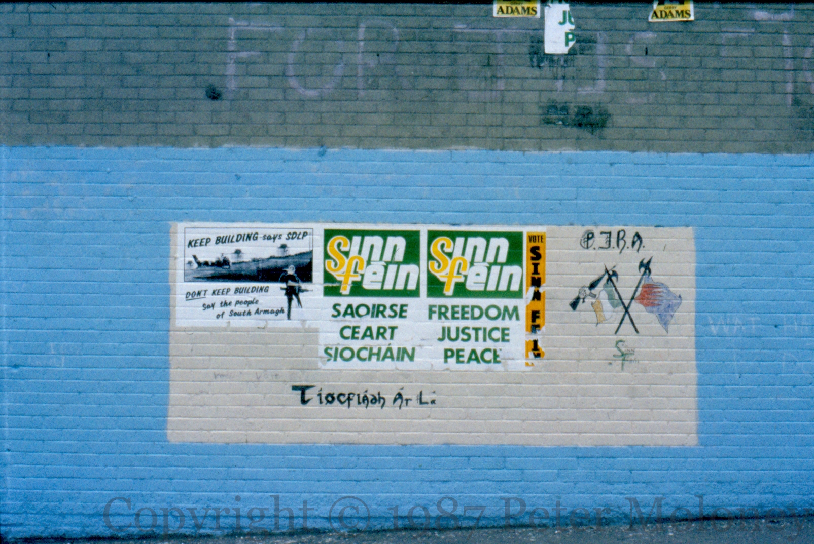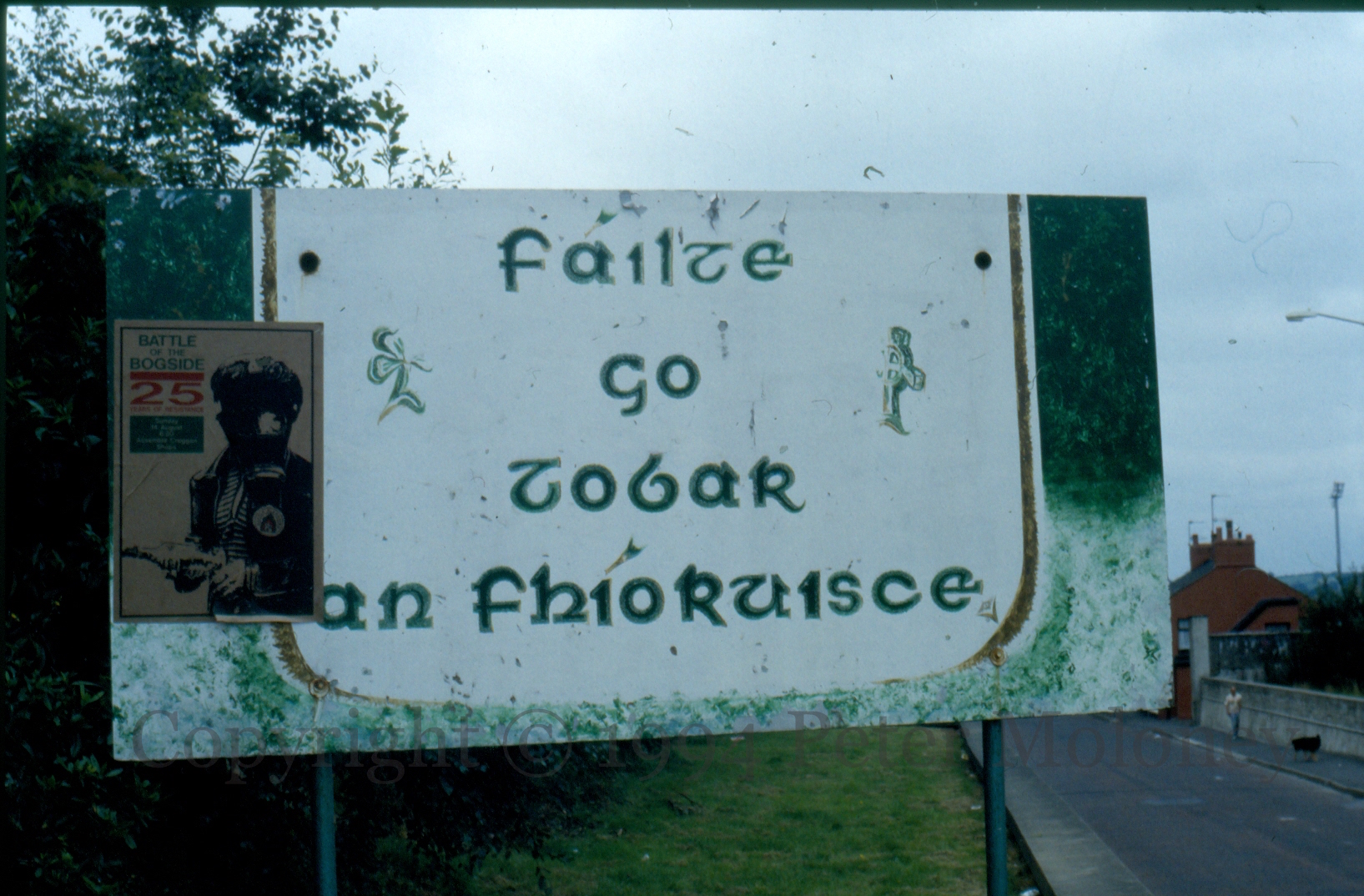 Londoner Stephen Lawrence was murdered by stabbing in 1993 and, although arrests were made, no charges were brought. A 1998 public inquiry found that the Metropolitan Police Service was “institutionally racist”. In 2012, two of the original suspects were found guilty of the murder (WP). Catholic Robert Hamill was beaten to death by loyalists in Portadown in 1997 while police in an RUC land-rover looked on (WP). The second image is of a fist smashing a swastika: “Stand firm – break the bigots [sic] back” on top of a Drumcree stand-off mural (which will become visible again in later years). Artana Street, Belfast