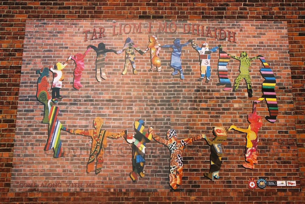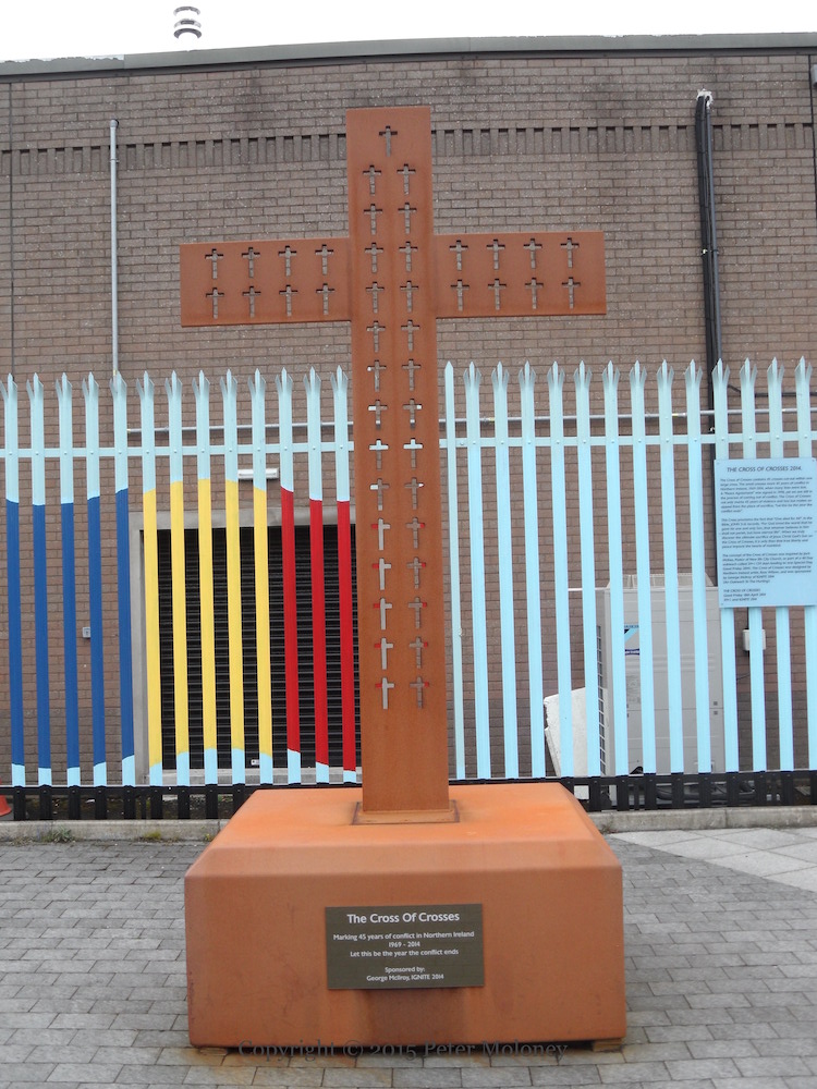 The main part of this installation is a large painted carving of lions rampant on either side of the emblem of the Shankill Protestant Boys flute band (Fb), named for the Shankill Boys of the original Ulster Volunteers and the Ulster Special Service Force unit within it which was designed to be a unit of “first responders”, ready to react at short notice to action by republicans or British forces anywhere in northern Ireland (historyireland).