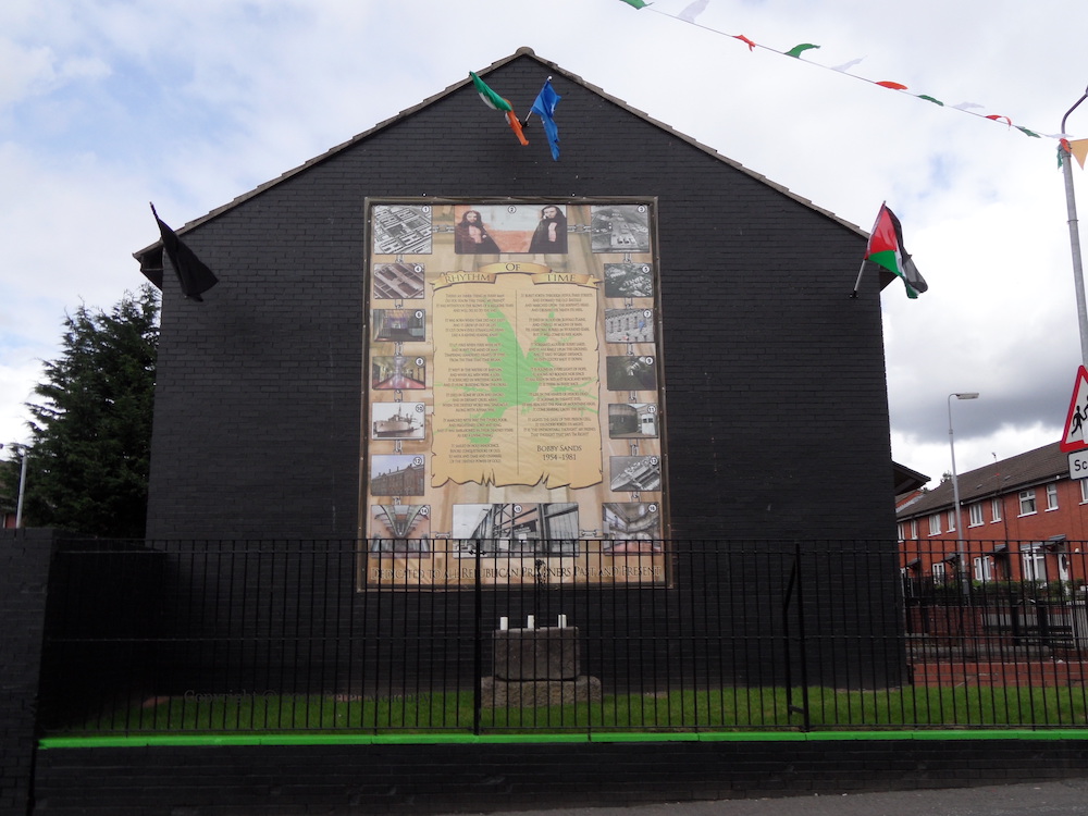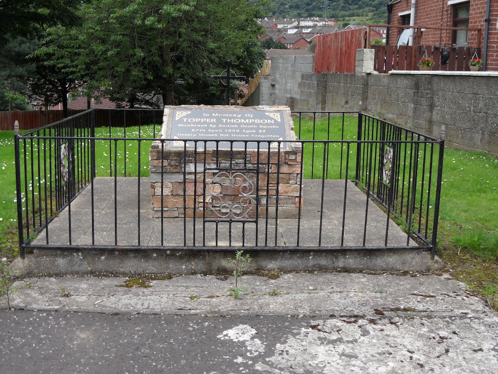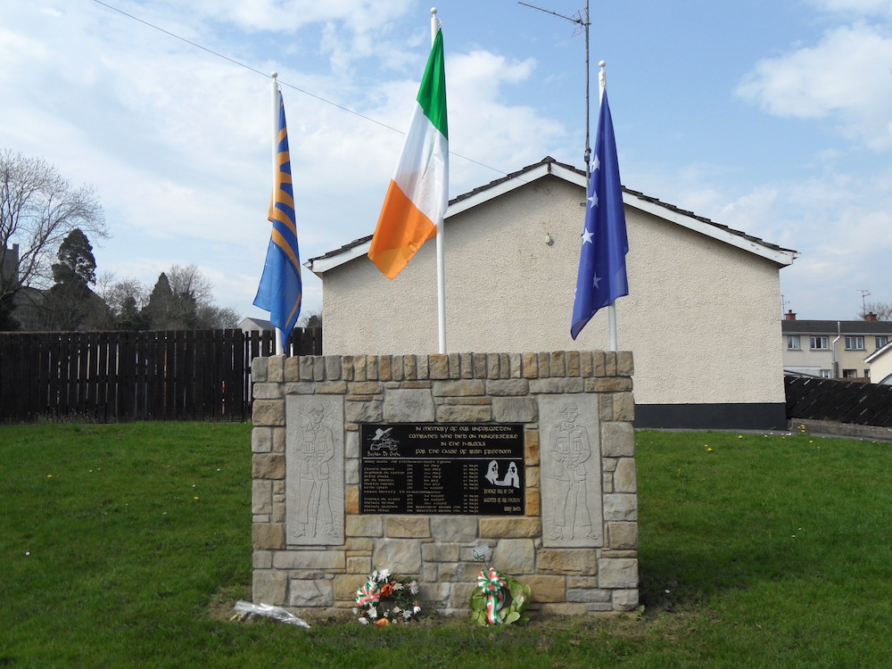 The memorial garden in Mount Vernon, which previously had and Ulster Volunteers mural and UVF stone, has undergone a major redevelopment this year (2015) with a new “cut-out” mural to the 36th (Ulster) Division and stand-alone memorial plaques to six UVF (3rd Belfast Battalion) members who were listed the plaque on the outside wall of the garden. “Murdered in the service of Ulster: Joe Shaw 18-5-1974, Samuel Frame 13-3-1976, Jackie Irvine 16-3-1989. Colin Caldwell 28-11-1991, Bertie Rice 31-10-2000, Mark Quail 1-11-2000.”