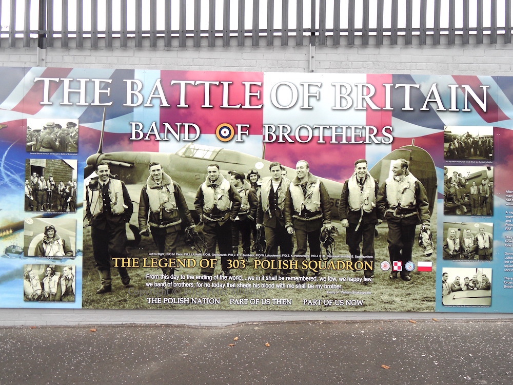 2015 marks the 75th anniversary of the Battle Of Britain, which was waged from July to October in 1940. This large board is part of an anti-racism project, celebrating the contributions to the Battle made by roughly 145 Polish aviators (WP) and especially the 303 squadron, which was stationed in Northern Ireland for a time (BBC-NI). “The Polish nation – part of us then, part of us now”.